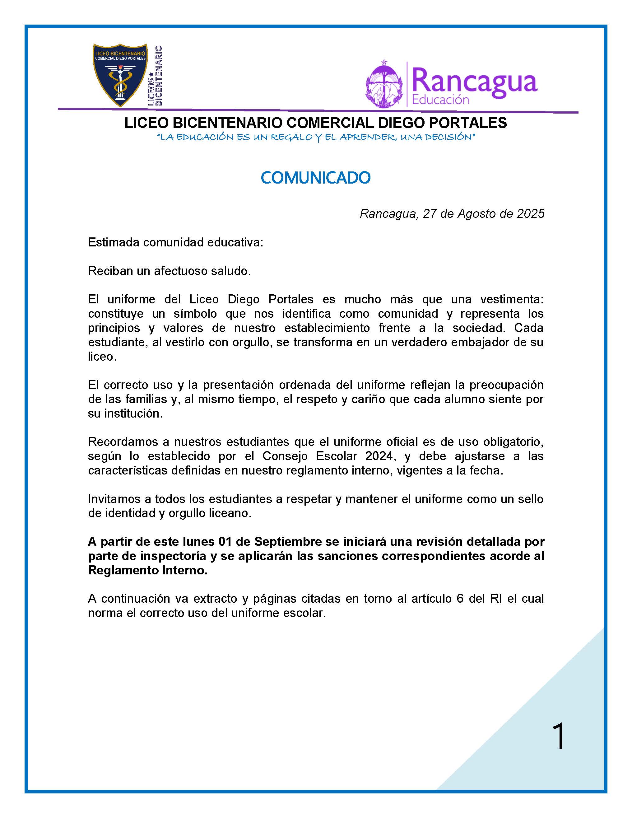Somos el Liceo Bicentenario Diego Portales de Rancagua , impartimos la enseñanza media técnico profesional del sector Administración y Comercio, tecnologÃa y comunicaciones, dependiente de la Corporación Municipal de Rancagua. Nuestras Especialidades